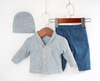וסט קורדרוי שמנת וכיס פסים אפור.